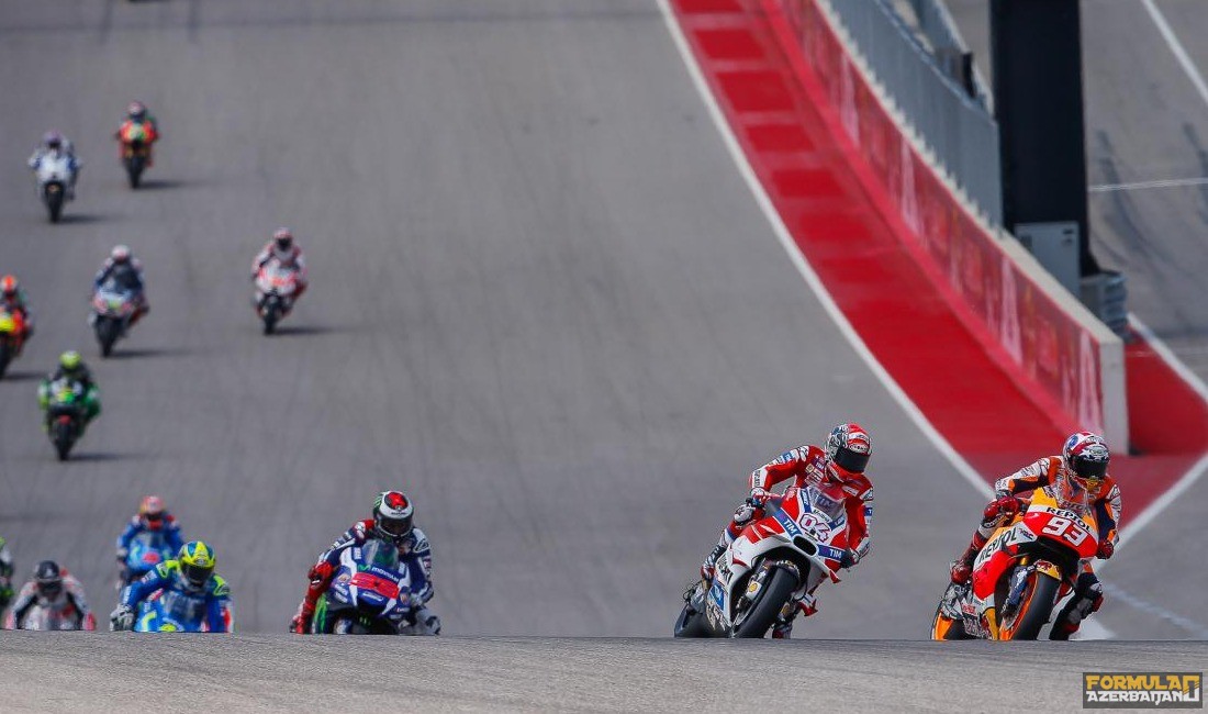 F-1.az bildirir ki, Mark Markes pouldan start alıb və birinci döngədə liderliyini bir neçə saniyəliyinə son dünya çempionu Xorxe Lorensoya uduzub. Amma Yamaha-nın sürücüsü əyləci gec basdığı üçün döngəyə geniş trayektoriya ilə girməli olub və öz həmyerlisini irəli buraxıb.