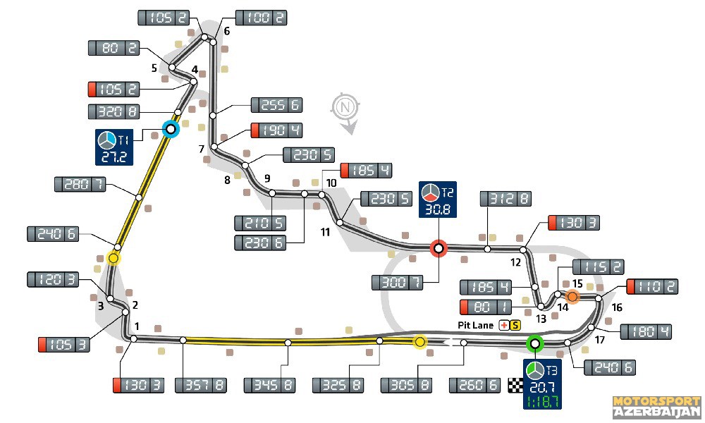 F-1.az federasiyanın rəsmi saytına istinadən bildirir ki, keçən illə müqayisədə təşkilatçılar trasda müəyyən dəyişikliklər ediblər – 2-ci və 3-cü döngələr arasında trasın sol tərəfindəki otluq sahə asfaltla örtülüb. İlk iki döngə arasındakı su arxının arxasında uzunluğu 2 metr, hündürlüyü 50 mm olan narıncı süni maneə quraşdırılıb. İkinci belə bir maneə növbəti iki döngə arasında trasdan bir metr sol tərəfdə quraşdırılıb.